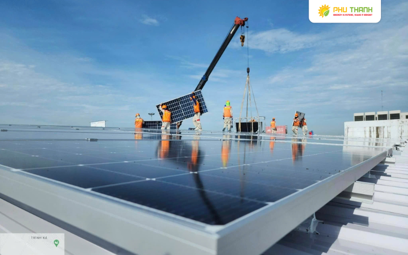 Hình 1: Hình ảnh Phú Thành Eco lắp đặt hệ thống điện mặt trời cho nhà xưởng