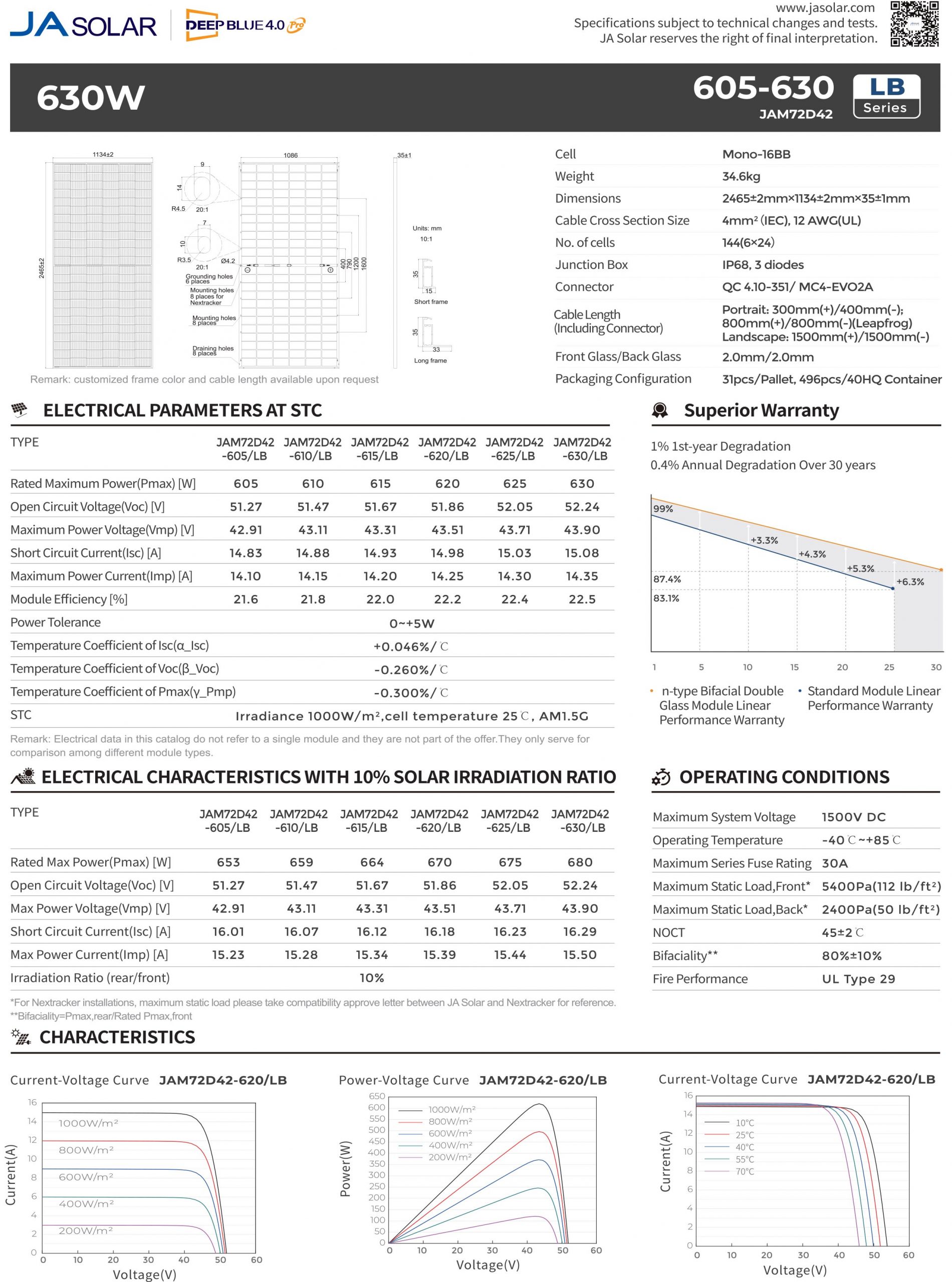 Pin mặt trời JA Solar 605-630Wp JAM72D42-605-630/LB, dòng N-TYPE