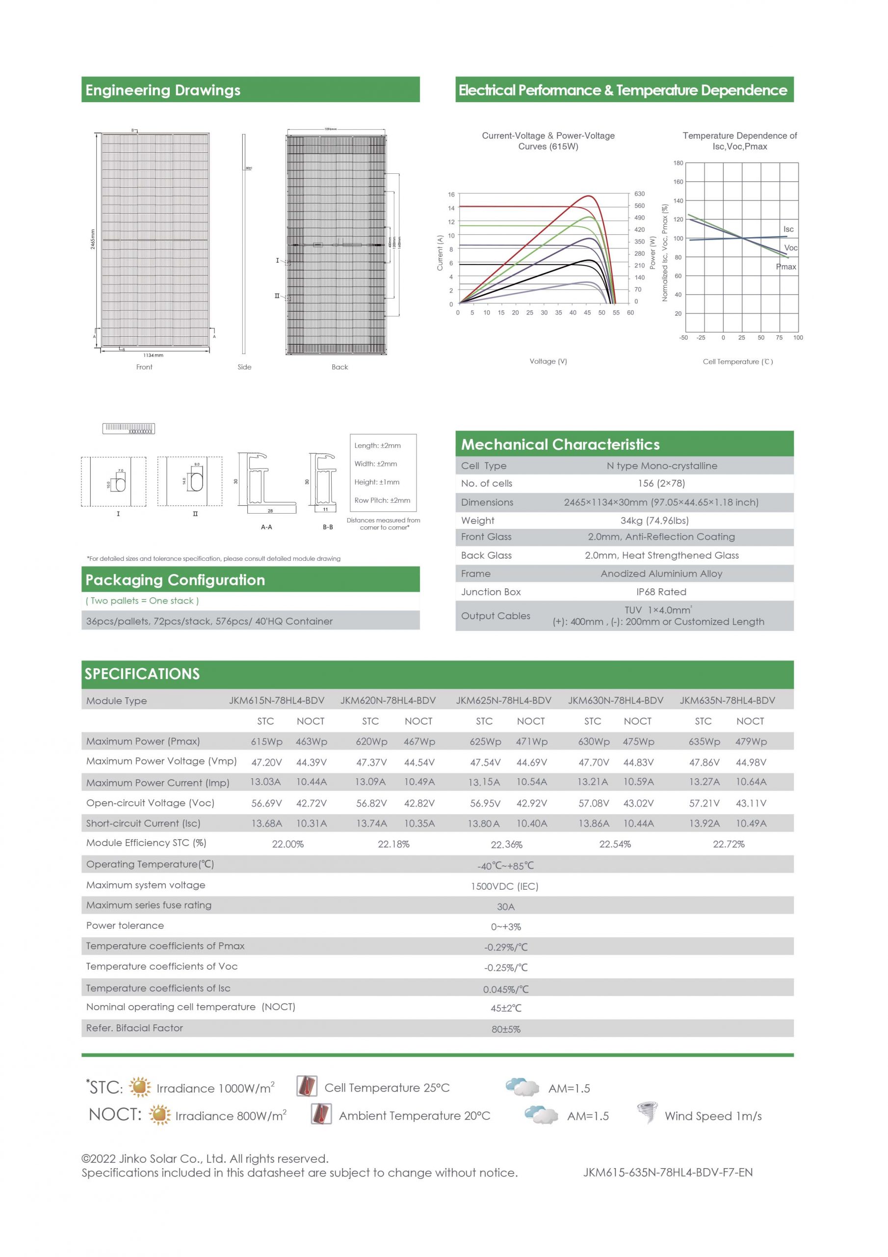 Pin mặt trời JINKO Solar 615-635Wp 78HL4-BDV, dòng N-TYPE